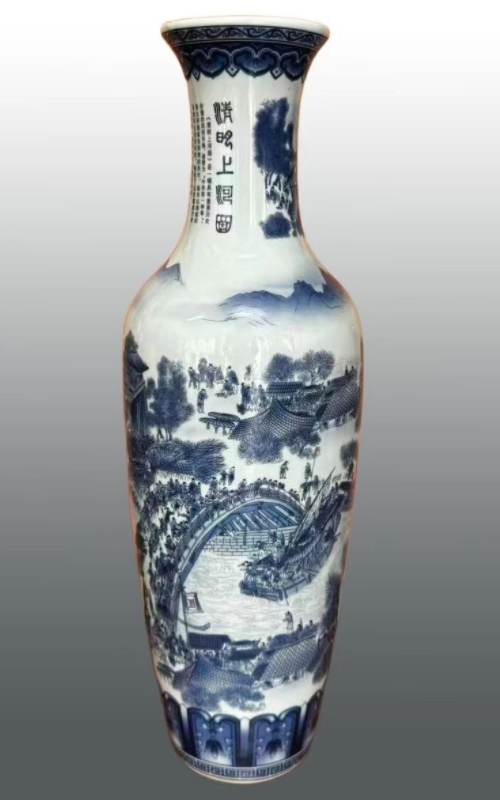 这套“景德镇陶瓷清明上河图大型瓷瓶”采用景德镇优质高岭土,胎质致密厚重、坚致如玉,釉面莹润如镜、光泽内敛,经釉下青花勾勒轮廓、釉上粉···