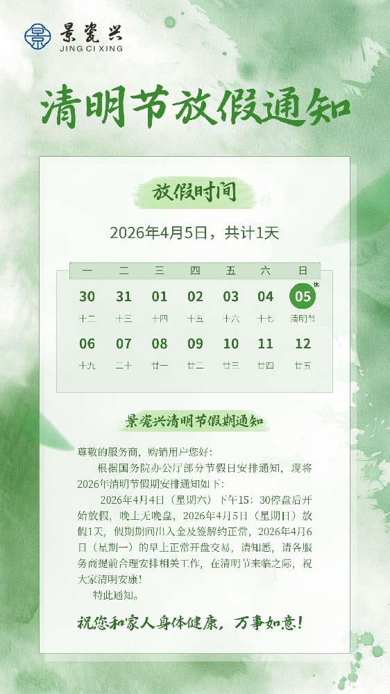 2026-04-01🌿【重要通知】景瓷兴 2026 年清明节休市 & 交易安排指南